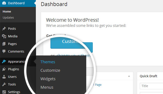 Primero, tienes que descargar el tema que compraste y que probablemente viene en un archivo .zip. Luego ingresa en el área de administrador de WordPress y selecciona Apariencia y seguido de Temas.