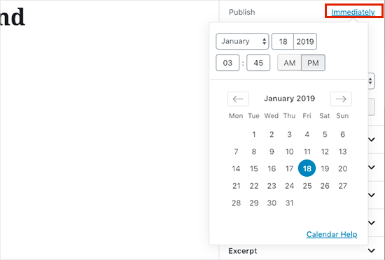 En la opción Estado y visibilidad debes seleccionar el enlace Inmediatamente que se encuentra junto a la opción de Publicar.
