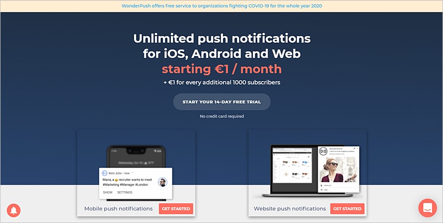 WonderPush nos permite crear varios tipos de notificaciones. Estos incluyen notificaciones automáticas de comercio electrónico, como notificaciones automáticas de carritos abandonados, por ejemplo.