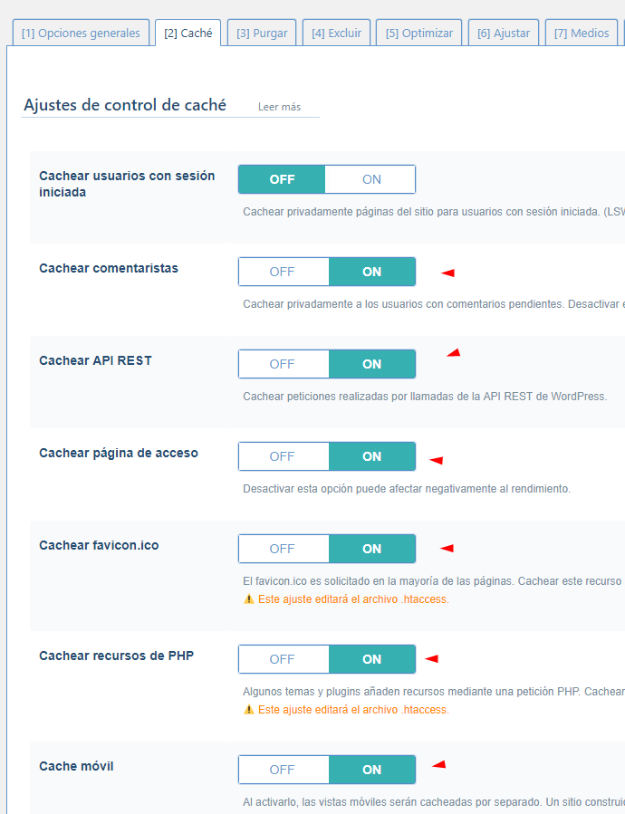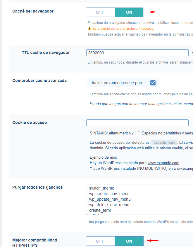 A su vez, podrá realizar la activación de la caché del navegador. Esto suele ser muy recomendado.