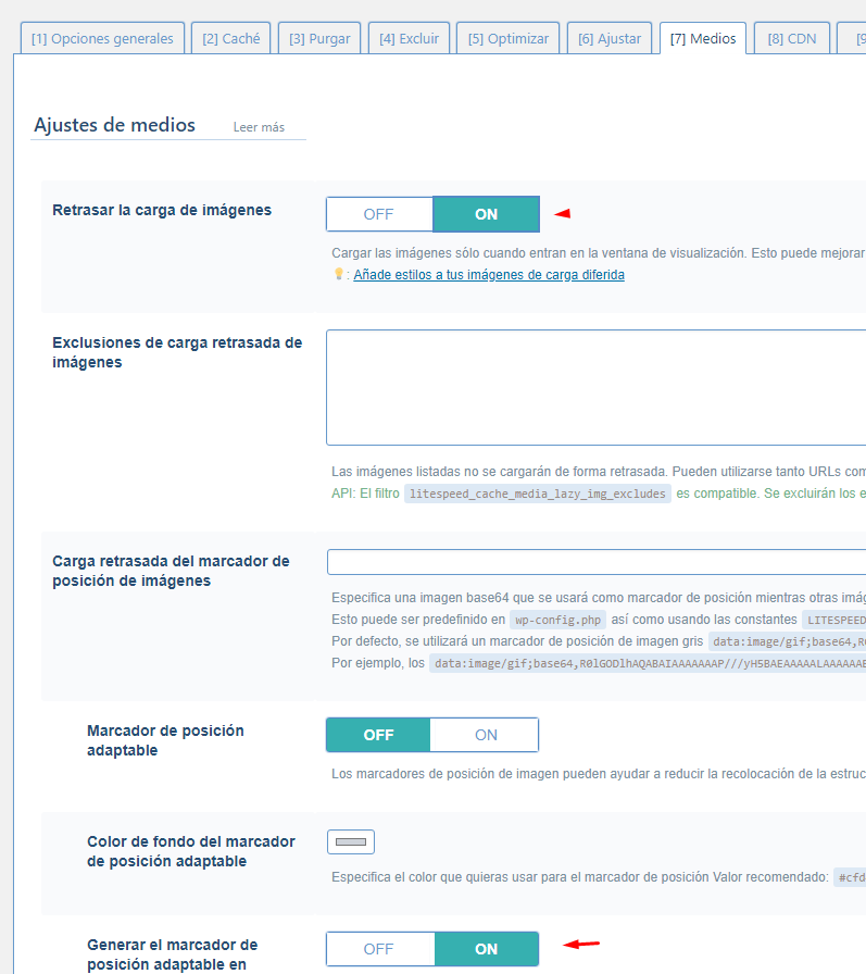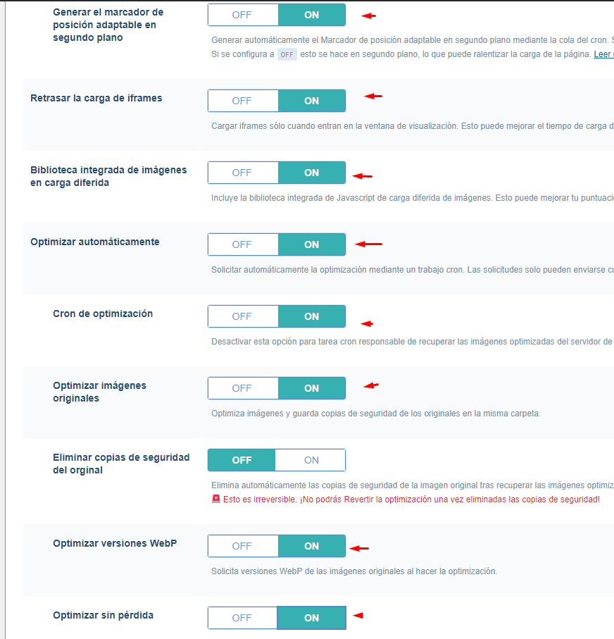 Podrá optimizar la carga de las imágenes habilitando ciertas opciones de esta configuración: